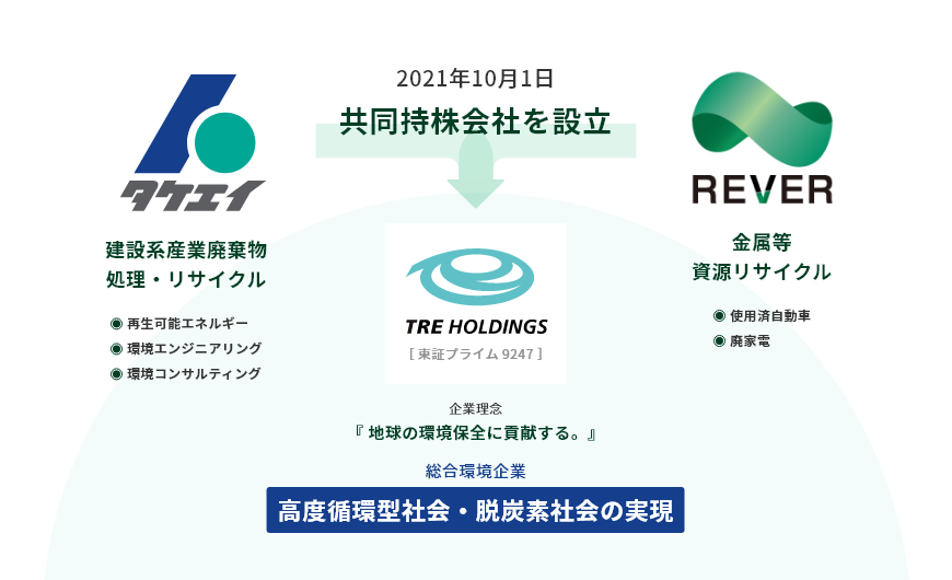 「高度循環型社会、脱炭素社会」を実現するため、 TREホールディングスは誕生しました。